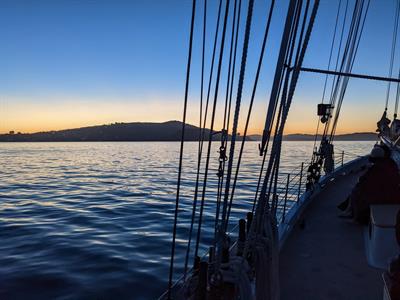 Underway for a leisurely evening sail, take in the views of the San Francisco skyline, Golden Gate Bridge, Bay Bridge, Marin Headlands, Alcatraz, and Angel Islands, all while experiencing the magic of the sunset and moonrise.